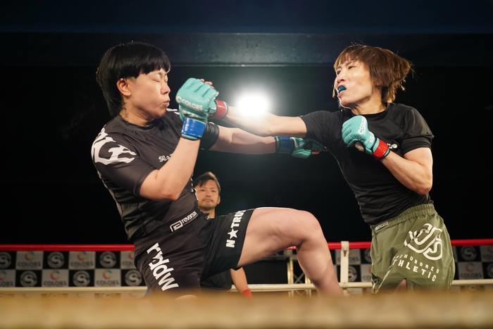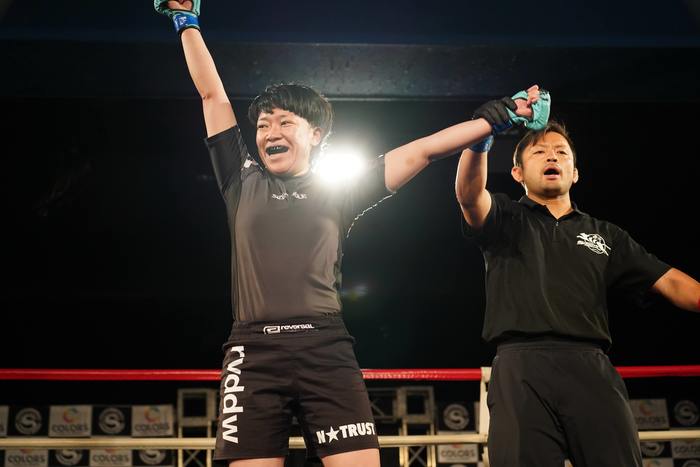 リアネイキドチョーク、腕十字狙いでゴング。深井が判定3-0(20-18×3)で勝利した。