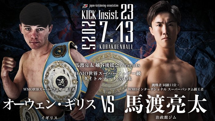 スペシャルメインイベントでは、WMOインターナショナル スーパーバンタム級王者で同級世界11位の馬渡亮太(治政館ジム)が、WMO世界スーパーフェザー級王者オーウェン・ギリス(イギリス)に挑む世界タイトルマッチが組まれた。