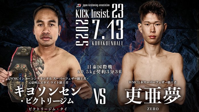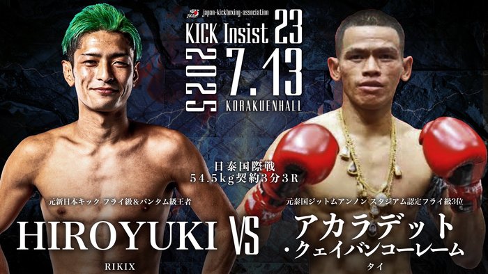 2025年7月13日(日)東京・後楽園ホールで開催されるジャパンキックボクシング協会主催『KICK Insist 23』の全対戦カードが発表された。
