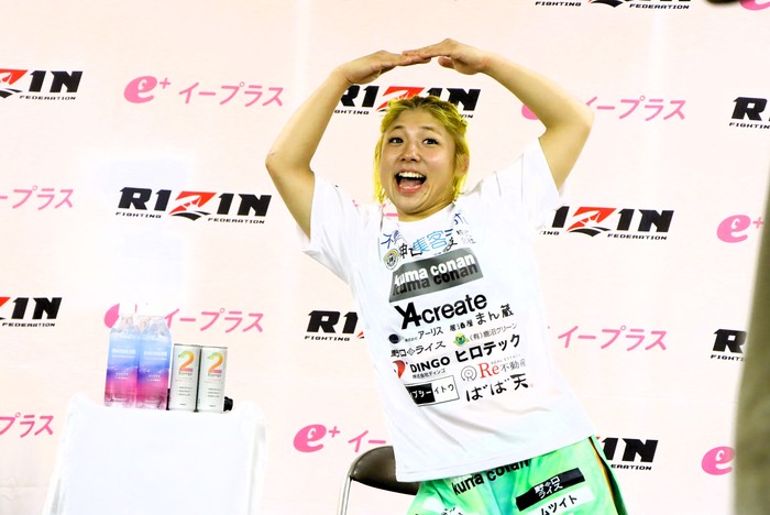 「本当はここサクっと勝って、『ストロー級のベルトを作ってください』というマイクをしようと思っていたのですけど、なかなかうまくいかないもので。またコツコツと頑張ってストロー級のベルトを作ってもらえるような試合をしていけるような選手になるように、頑張ります!」