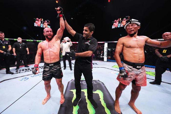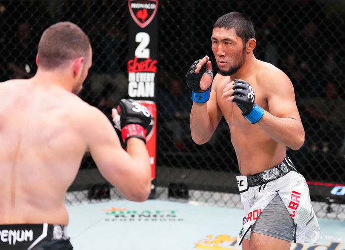 対するキルギスのオルロバイは、2023年11月のUFC APEX大会の試合4日前に欠場選手の代役としてUFCと契約。初戦はウェルター級で、UFC3勝1敗のウロシュ・メディチを相手にグラウンドコントロールし、2Rにネッククランクで一本勝ち。2戦目は本来のライト級に戻し、UFC3連勝中のエルブス・ブレナーと対戦。ワンツーの右を当てて粘り強いケージレスリングからテイクダウンを奪って削り、、判定勝ち。24年10月の前戦では160ポンドのキャッチウェイトで、マテウシュ・レベツキと対戦。ともに打撃から組んでのスクランブルでも譲らず。3RにKO負け寸前から盛り返す、大流血戦のファイトオブザナイトの激闘を繰り広げたがスプリット判定負け。オクタゴン初黒星を喫している。27歳。