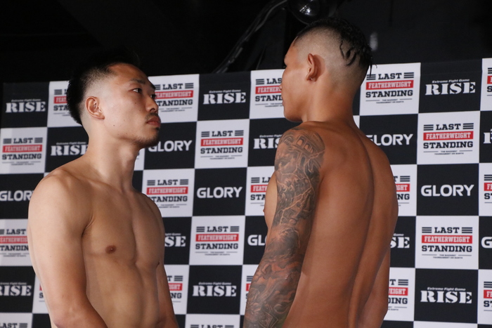 「RISE WORLD SERIES 2025 -61.5kg Tournament」の準決勝2試合が行われる。セミファイナルの中村寛(BK GYM/第8代ライト級王者)は61.3kg、笠原友希(シーザージム/シュートボクシング日本スーパーフェザー級王者)は61.45kgで計量をパス。第12試合の常陸飛雄馬(TARGET SHIBUYA/スーパーフェザー級3位)は61.35kg、エン・ペンジェー(中国/仏山温拿拳館)は61.45kgでそれぞれ計量をパスした。