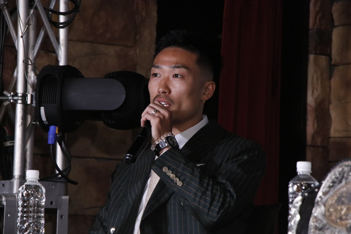 中村「勘違いしているのは、今日ここに来ているわけじゃないですか。目も合わせてないのにいい顔しているって言ってるので、勘違いしていると思うのでゴングが鳴ったら思いっきり潰しに行きます。その時に上がって来てたらですけれど。リングに上がってきてたらその上がってきた人間をおもっくそ潰すだけなので楽しみにしていてください。世界一まであとふたつなので。目の前の試合に集中してきたので、また進化した姿をお見せするのでお楽しみに」