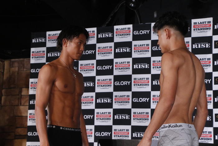 第6試合の-57kg契約3分3R延長1Rで対戦する、鈴木真彦(TEAM 寿/バンタム級2位、第7代RISEバンタム級王者)は56.7kg、戸井田大輝(TOP LEAD GYM/フェザー級9位)は56.9kgでそれぞれ計量をパス。