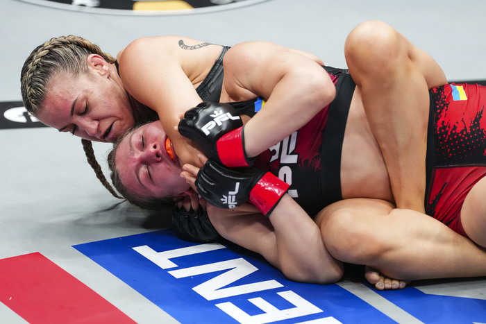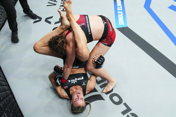 JENA BISHOP TO THE CHAMPIONSHIP! She finishes Ekaterina Shakalova with a rear naked choke. #PFLWorldTournament LIVE NOW