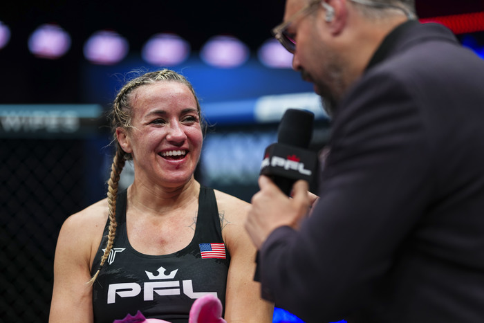 Jena Bishop is absolutely thrilled with her performance tonight!#PFLWorldTournament LIVE NOW