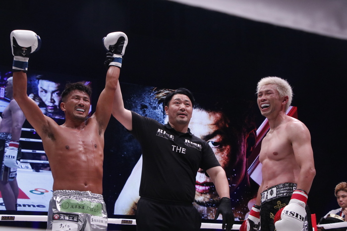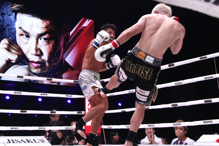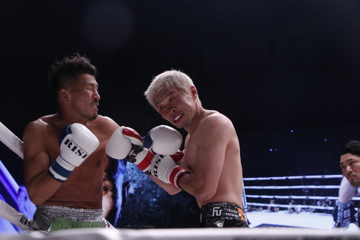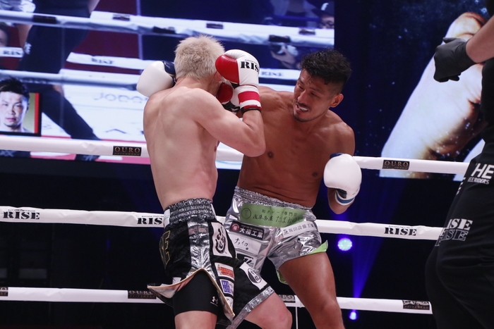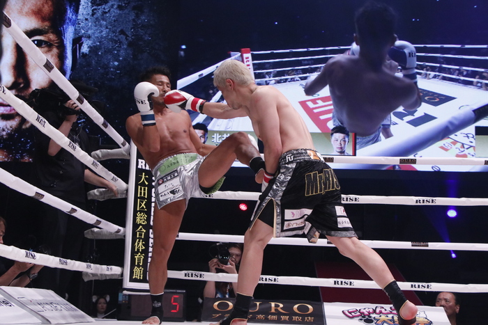 3R、前蹴りを多用して裕樹をローの距離に入らせない北井だが、裕樹はもうひとつの得意技であるノーモーションの右ストレートで入り込みキレのある左ローを狙い撃ち。この左ローに右足を上げる北井。あわや逆転かと思われるほど裕樹のペースが上がったが、時すでに遅し。北井も左右フックで反撃。