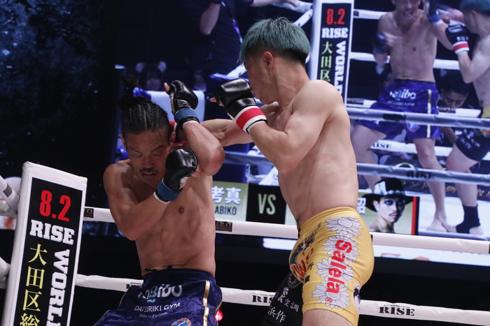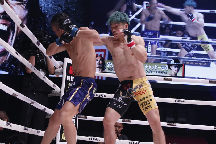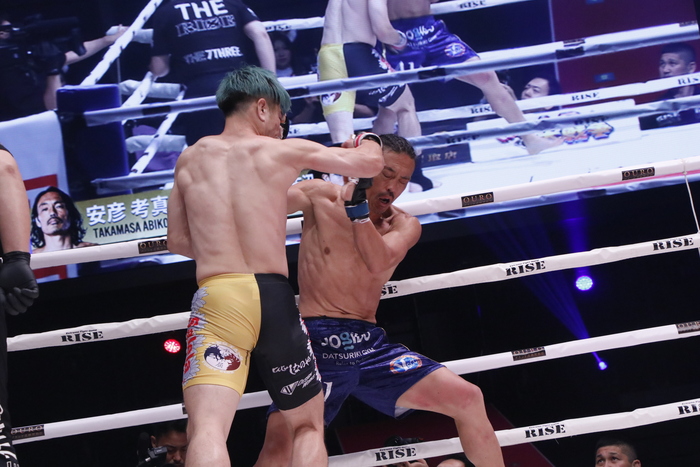 2R,安彦は掛け蹴りを多用し、吉沼は前へ出て圧をかけていくがついに安彦のバックハンドブローをもらってダウン。吉沼はさらに圧を強めて右アッパー、左右フック。左ミドルが強烈に決まり、安彦にロープを背負わせた吉沼がパンチの連打でゴング直前にスタンディングダウンを奪い返す。