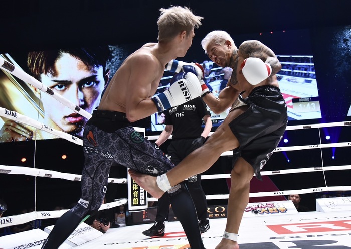 左ミドルは笠原の左ローと相打ちになり、笠原の蹴りはローブローとなって中断。すぐに再開し、左カーフを蹴った中村に笠原が左ハイ、さらに左の飛びヒザを放ち中村は右の目上をカット。