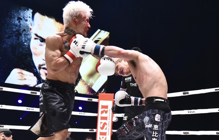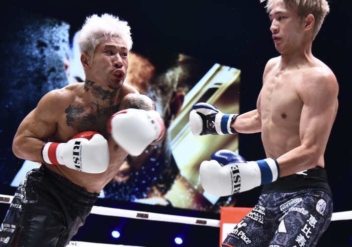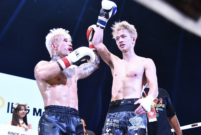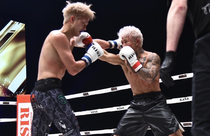 3R、強引に距離を詰める中村に笠原は前蹴りを連打。中村がローを蹴ると笠原は左右ストレートを当てていく。笠原が左ストレートで前へ出てヒザを突き刺す。笠原の左ストレートによろける中村。さらに笠原は左ボディ。しかし、中村が右アッパーから右フック連打で逆襲して試合終了。