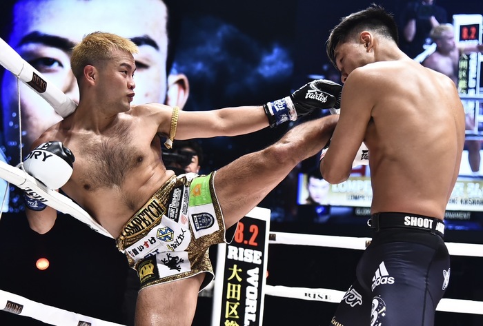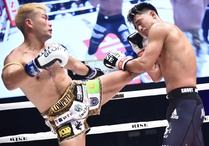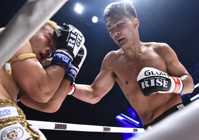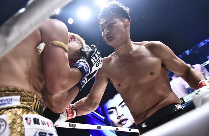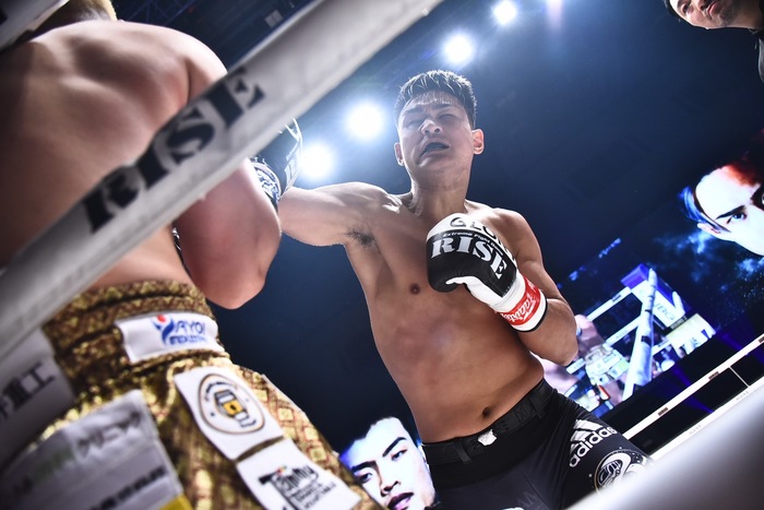 3R、右ストレートをヒットさせた笠原は、LOMPETCHの前蹴りをキャッチして左ボディ。LOMPETCHは前蹴りを連発して笠原を遠ざけようとするが、笠原はコーナーへ詰めると左右ボディ連打。右の三日月、左ボディとボディを攻めていく笠原。しかし、LOMPETCHはタフだ。笠原の右フックにのけ反っても倒れない。
