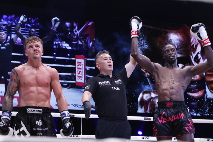 3R、カッファの左右フックがようやくサッコを捉え始め、カッファの右インローにサッコの足が跳ね上がる。しかし、サッコは回り込みながら左ミドルと前蹴りで距離をとる。近付くとヒザ蹴り。サッコが完全なムエタイスタイルで試合を支配し、判定3-0で勝利した。