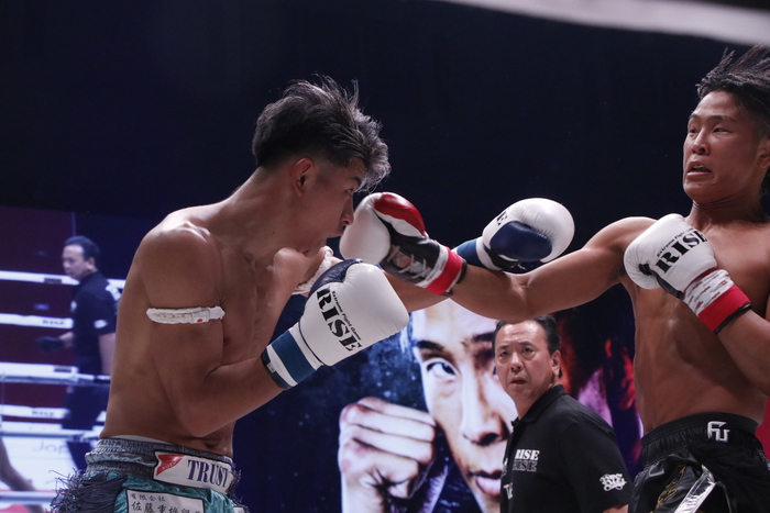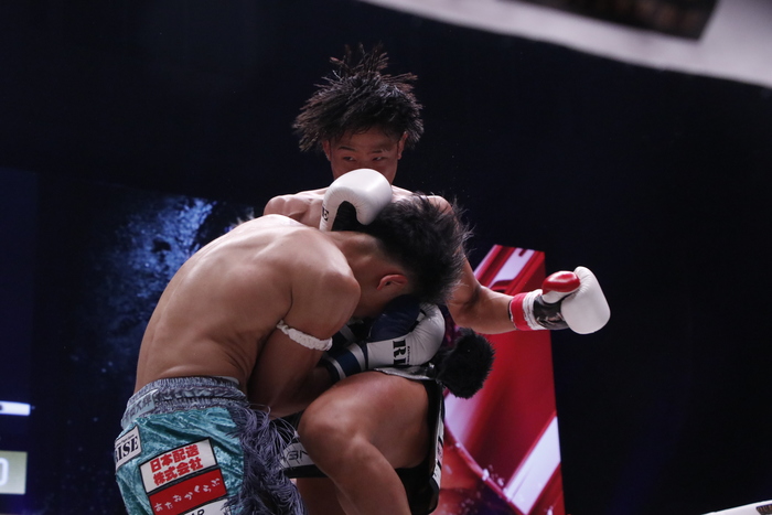 3R、戸井田も意を決して打ち合いを仕掛けての打ち合いとなり、両者被弾するが強い攻撃を入れるのは鈴木。右ストレートから入り、左右ボディ、蹴りも織り交ぜる。戸井田も左フックを中心にパンチを当てるが、鈴木の連打の返しが速く、コーナーへ追いつめられる。ヒザも突き上げる鈴木。