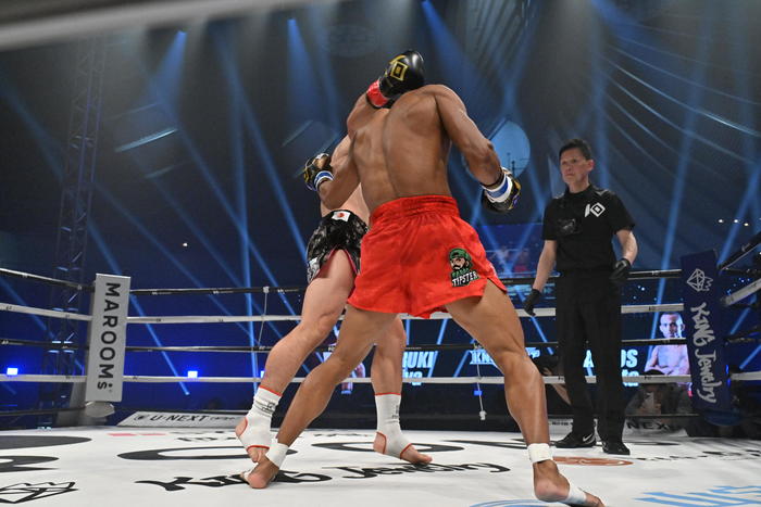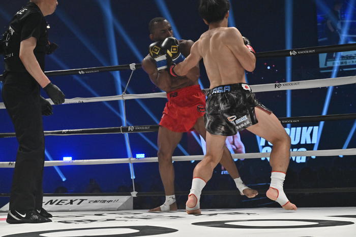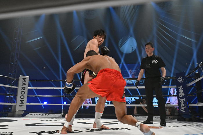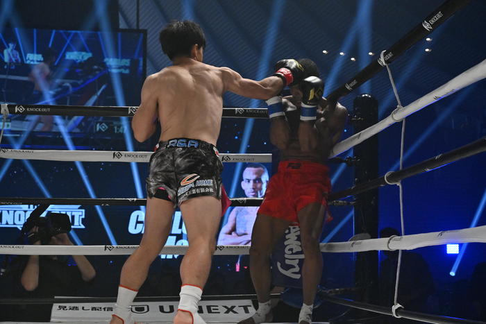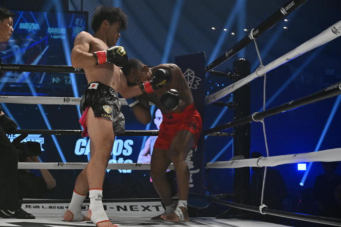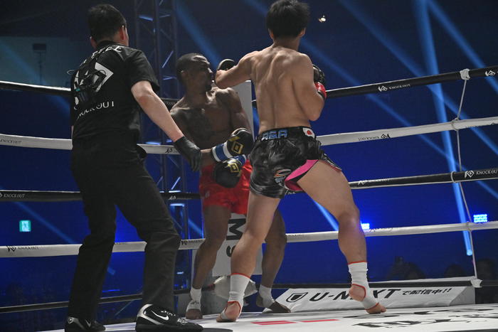 前に詰める古木にモタはバックキック、ワンツー、ステップで下がりながらジャブ、右ストレート。古木は左ボディ、左ハイ、コーナーへ詰めて連打。下がるモタをジグザグに動きながら追いつめ、連打でコーナーへ追い込み、最後は左フックでなぎ倒してKO勝ち。古木が衝撃的なKOで異種格闘技戦を制した。