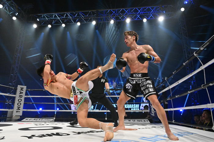 2R、左右ミドルを蹴るセーンダオレックに髙橋は奥足への右ロー。セーンダオレックのミドルをキャッチしてのミドルの蹴り返しも使う。前に出てくるセーンダオレックは左ストレートを強打。左ミドルを右手でキャッチした髙橋は左ストレートのカウンターを入れてダウンを奪う。