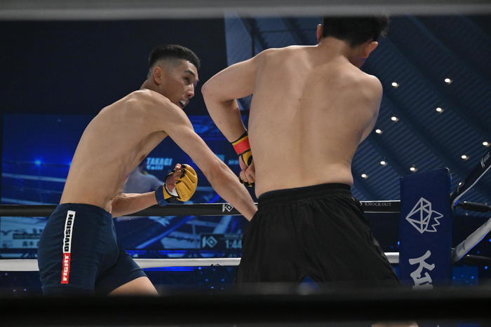 前に出る中村に高木が右フックをヒットさせ、中村が首相撲からヒザを突き上げる。テイクダウンに行く高木だがまたもブレイクに。中村がパンチの連打で高木にロープを背負わせる。