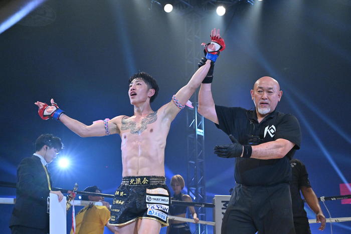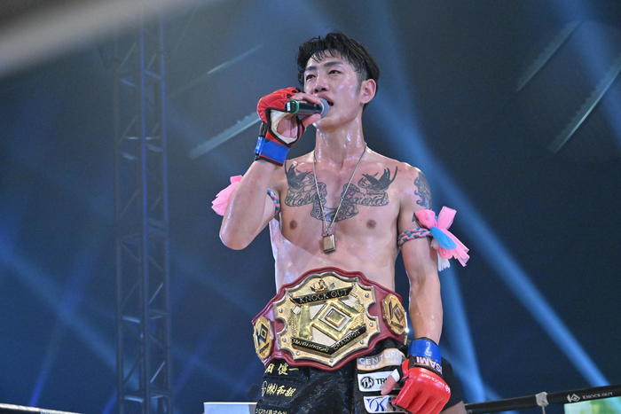 新王者となった森岡は「どうですか、皆さん。これがKNOCK OUTなんですよ。まずはキックを始めてからずっと教えていただいた先生、ありがとうございます」と周りの人たちにお礼。「KNOCK OUTの絶対王者になれるか分からないですけど、誰よりも面白い試合をする、そういう王者になります。絶対KO決着でKNOCK OUTを盛り上げるのでよろしくお願いします」と、王者としての方針を示した。