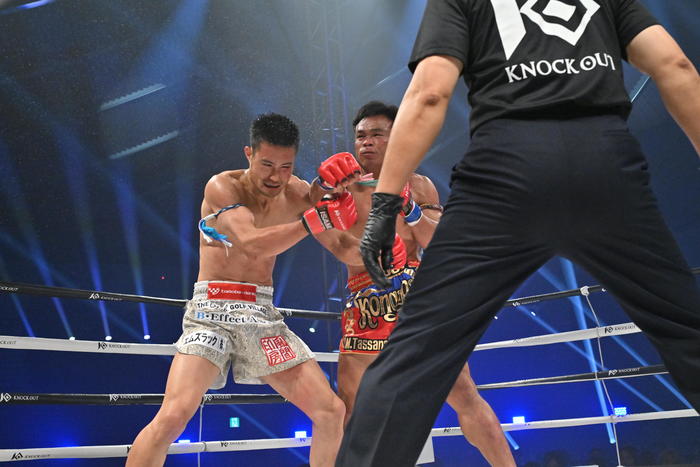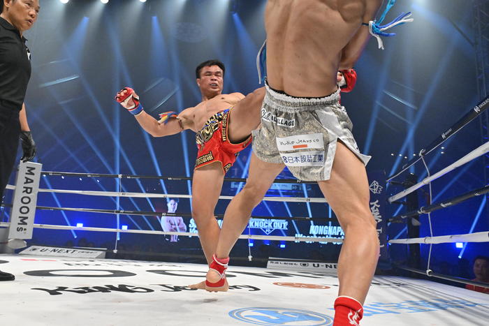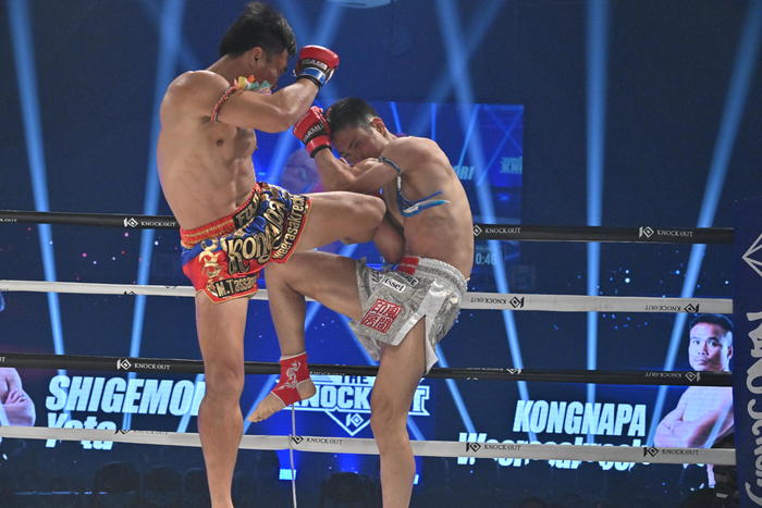 3R、ジャブを突く重森にゴンナパーは左ミドル、重森が右ハイを2発蹴った直後、ゴンナパーがテンプルへ右フック一閃。重森は硬直したように横倒しになり、頭部をマットに強打。ゴンナパーがKOでタイトルを奪取した。