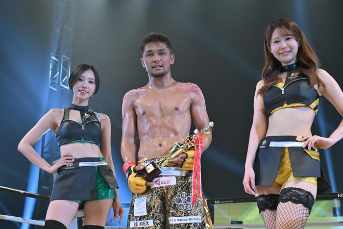 判定は大沢がフルマークの勝利。大沢はマイクを持つと「俺が負けるとか、祖根くんの勝利を予想していたこのクソラウンドガールとアンジーひより、見たかバカ!」と、またしても悪態をつく。
