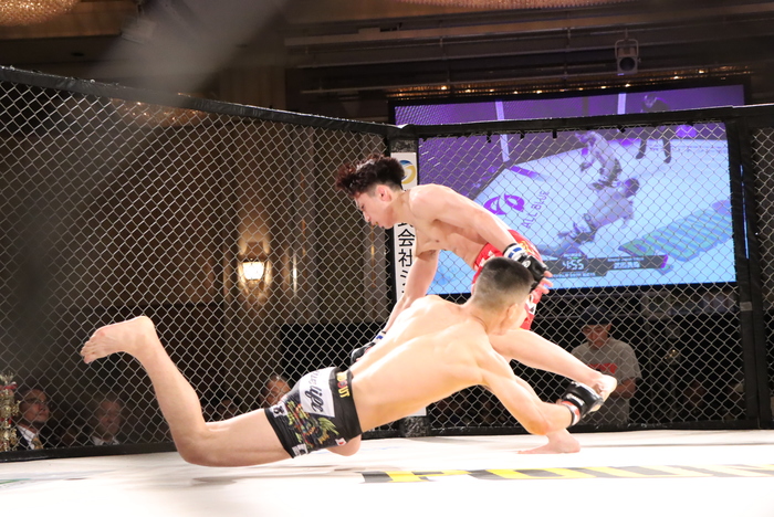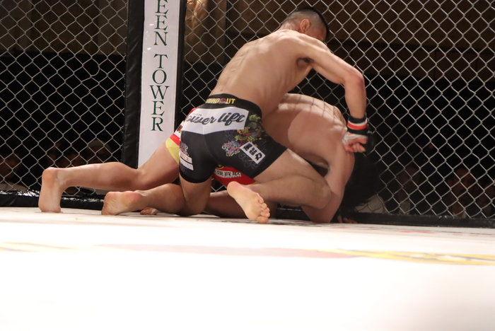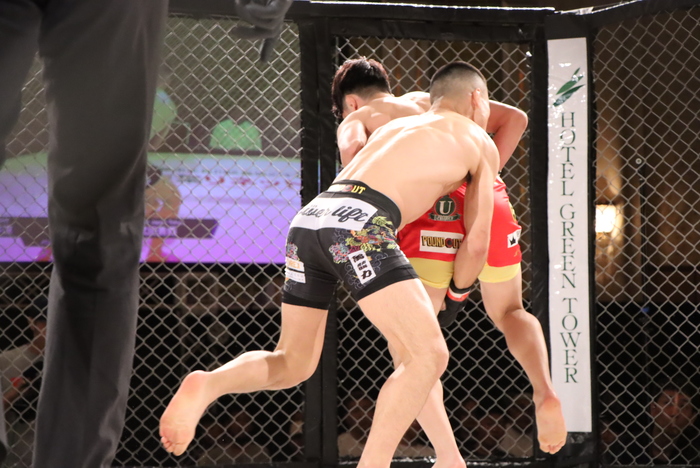 マスタージャパン東京所属、空手バックボーンの22歳の武田勇輝がプロ2戦目。対するはレスリング歴20年、PANCRASE2戦2勝の松井涼。