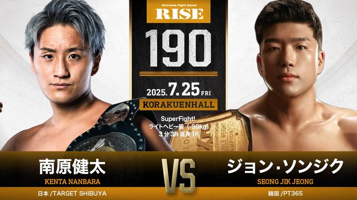 2025年7月25日(金)東京・後楽園ホール『RISE 190』にて、第2代RISEライトヘビー級王者・南原健太(TARGET SHIBUYA)の約1年ぶりとなる復帰戦が決定した(※極真会館を5月31日付けで退館、所属が変更となった)。