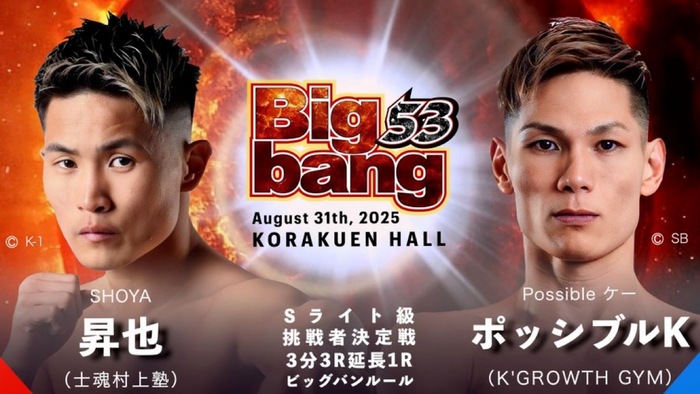 ポッシブルKは、2923年12月にBigbangへ参戦し、MA日本ライト級王者・平澤優聖に2R KO勝ち。2024年2月にスックワンキントーンで小林司に勝利して再起を飾るも、4月は健太に判定負け。6月は当時スーパーライト級王者の琢磨のタイトル挑戦も経験。その後はシュートボクシングで成尾拓輝、今年3月はBigbangで林京平と激闘を展開し再びベルト挑戦を狙う。