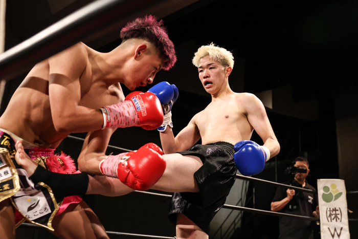 続く2R、勝負が動く。互いにパンチの交差が増えていく中でヒザ蹴りに合わせた小野田のストレートが井端にクリーンヒットしそのままダウン、小野田がファーストダウンを奪取する。しかしここで井端は吹っ切れたか動きに固さがなくなると、ジャブにストレートをヒットさせるなど攻勢が増えていく。2R終了時点でのオープンスコアは2名が20-18、1名が20-17で3者共に小野田を支持。