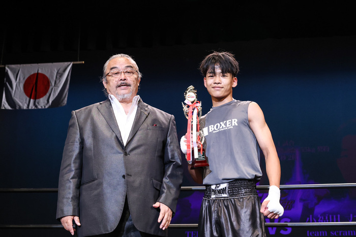 OPイベント、アマチュアファイトでは2試合が開催されるとOPイベントから会場は熱気に包まれる。OP第1試合では小福田丈虎が1Rにカウンターの左フックでダウンを奪うと、2Rにはパンチラッシュでダウン奪取とアマチュアファイトながらダウンを2度奪い判定勝利。