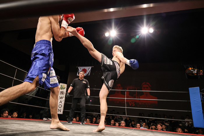 1R、近藤はジャブにローを放ちながらじっくりと出方を伺う。榎木は構えをスイッチしながら前蹴りにハイキック・ストレートと繰り出していく。互いにローで蹴り合う場面も多く、途中からは近藤も構えをスイッチをするなど互いにけん制し合う展開。ラウンド後半には榎木のパンチ連打が目立ち第1Rは終了。