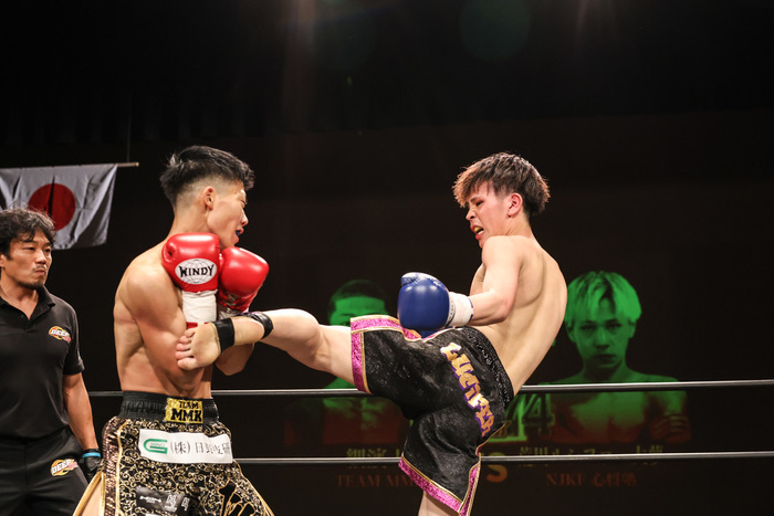 最終R、近い距離での攻防の中で荒川はヒザを、細濱はストレートと互いに2R同様の技で好機を狙う。細濱としては減点を取られている分ここで挽回を狙いたい所だったが、距離が近すぎることも影響してこれといった1発が出ない。対する荒川はストレートにヒザ・ミドルと攻防の中で確実に自身の強みを出していき試合終了。