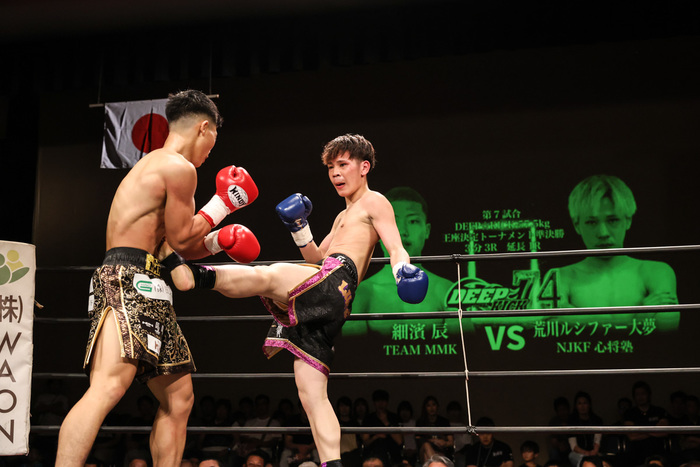 DEEP☆KICK-57.5kg王座決定トーナメントのもう1ブロックで、同級3位であり引き分けもあるがここまでプロ戦績2勝1KO2分と負けなしを誇る細濱と、同級8位であり現在連勝中と勢いに乗るキック界の堕天使・荒川ルシファーが対戦。