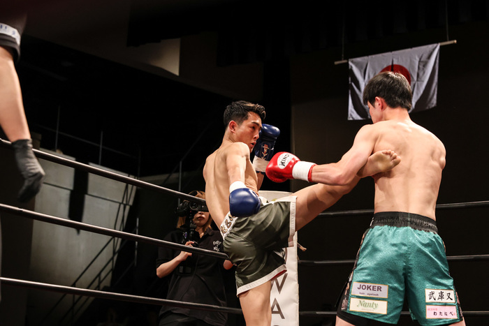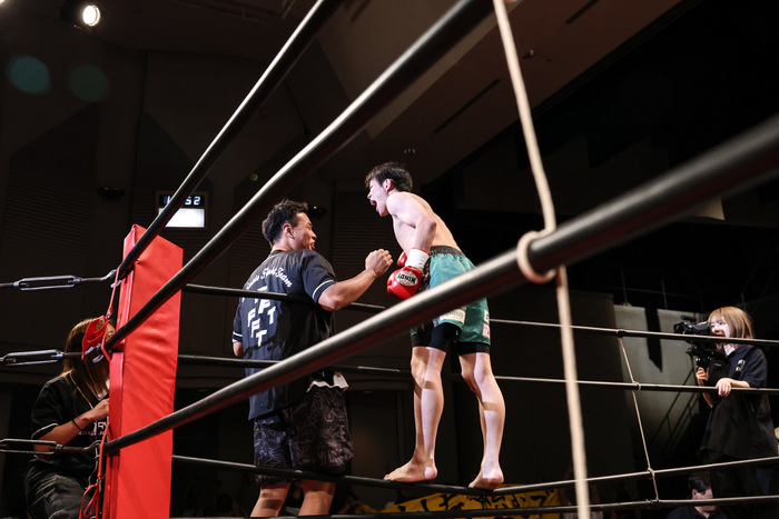 1R開始早々からジャブにツーフックを放ちながら圧をかけていく津留、平尾は左ミドルに前蹴り・ストレートと返していくがコーナーを背負う展開が続く。そして早くも勝負が決まる。再び平尾をコーナーに追い詰めた津留はそのまま右フックをヒットさせると、平尾はストンとその場に倒れこみ津留がダウンを奪取。ダメージは甚大、立ち上がろうとするも力の入らない平尾を見たレフェリーが試合をストップ、1R1分26秒、過去KOはおろかダウンすら獲られたことのない平尾を相手に津留が一撃KO勝利を飾った。