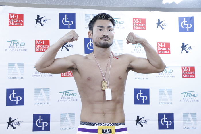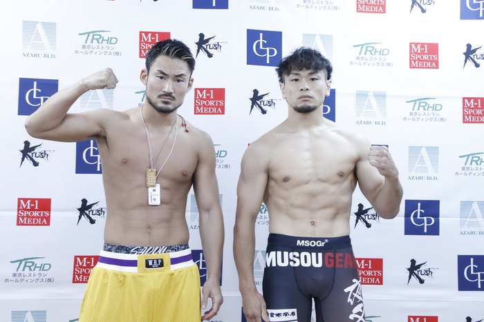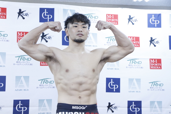 メインイベント(第9試合)のKrush-OFGミドル級3分3R延長1Rで対戦する、神保克哉(K-1ジム目黒TEAM TIGER)は74.9kg、夜叉猿(力道場静岡)は74.6kgでそれぞれ計量をパス。