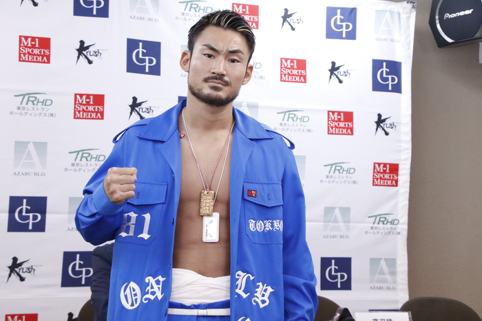 初使用となるオープンフィンガーグローブにはどんな取り組みをしてきたか、との質問に夜叉猿は「今までと違うグローブやからパンチの練習はしたで。痛いから途中からシャドーにしたけど」と言い、神保は「『特攻の拓』を読んできました」という。