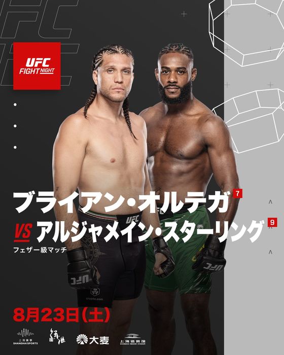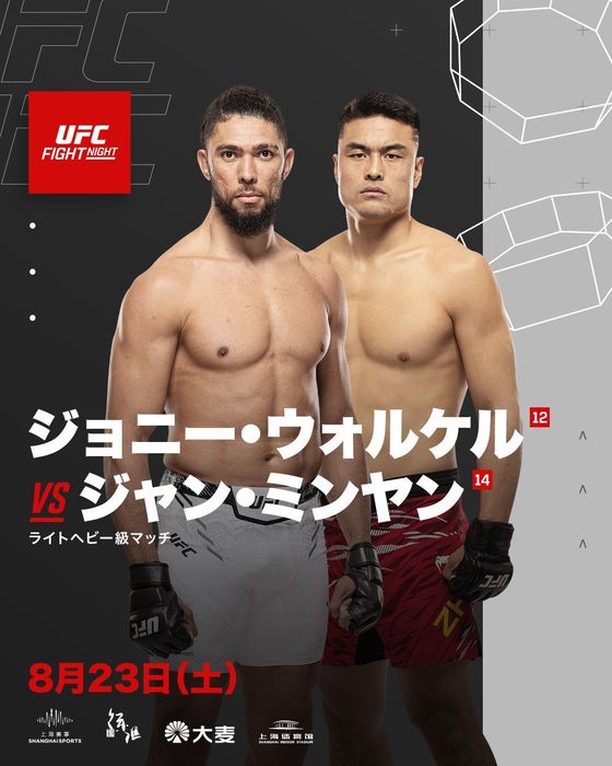 また、翌23日の『UFC Fight Night: Walker vs. Zhang』では、メインイベントで、UFCライトヘビー級12位のジョニー・ウォルケル(ブラジル・21勝9敗)が、14位のジャン・ミンヤン(中国・19勝6敗)と対戦するほか、コメインでは、フェザー級7位のブライアン・オルテガ(米国・16勝4敗)と、同級9位のアルジャメイン・スターリング(米国・24勝5敗)が対戦する。