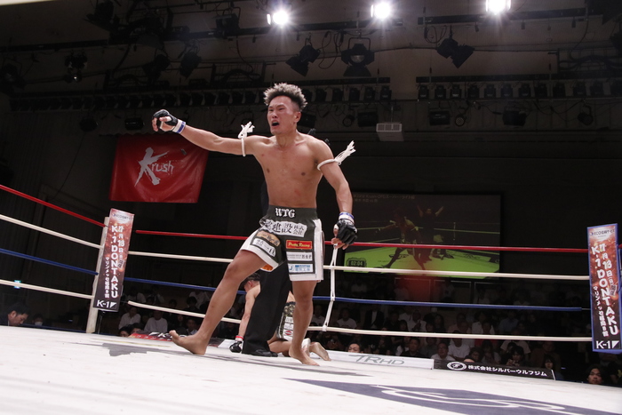 3R、左フックで後ろを向いた東本に右フックでダウンを奪う。続けて左右の連打で前へ出ていった龍に東本はダウンを喫し、龍のKO勝ちとなった。