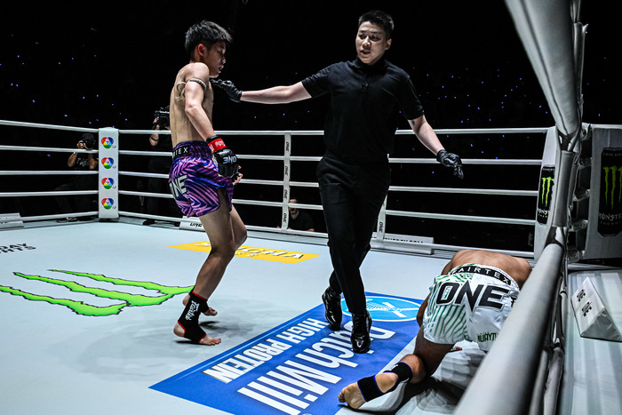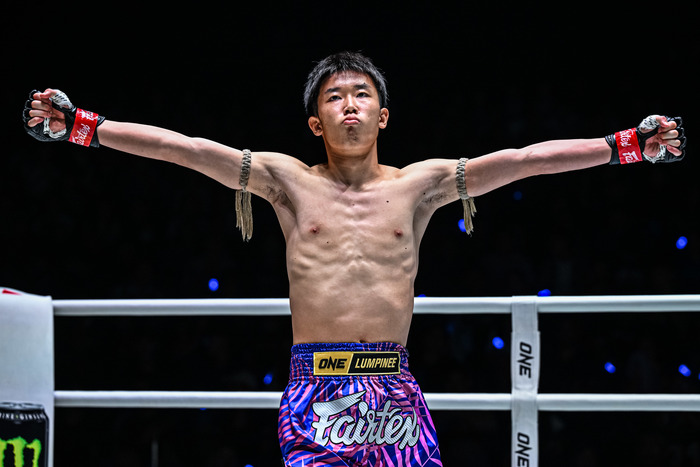 石井寿来(ウォーワンチャイプロモーション)は第2試合のキャッチウェイト(54.4kg)ムエタイ3分3Rで、ユネス・ムーニン(モロッコ)を2R2分57秒、左ヒザ蹴りで見事KO。ボーナスも獲得した。
