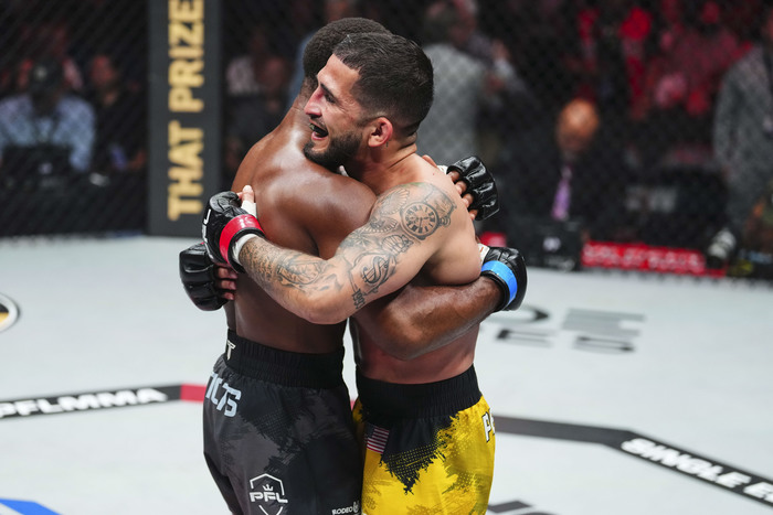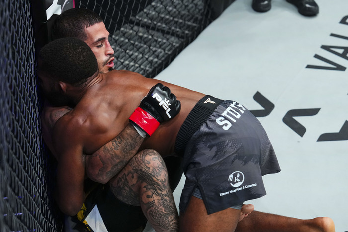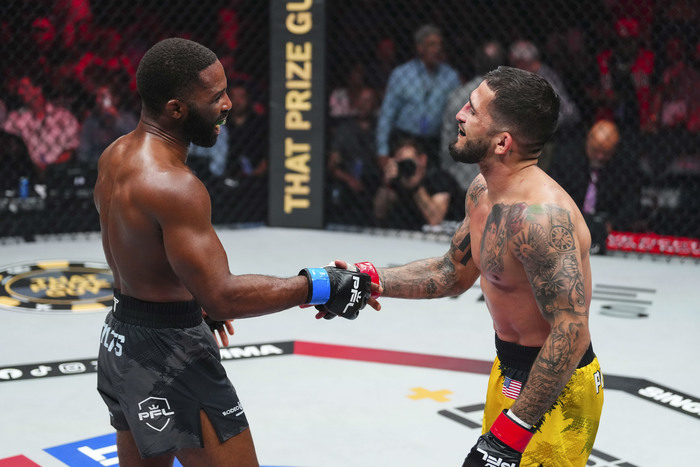 It's all love between Sergio Pettis & Raufeon Stots 👏#PFLWorldTournament LIVE NOW
