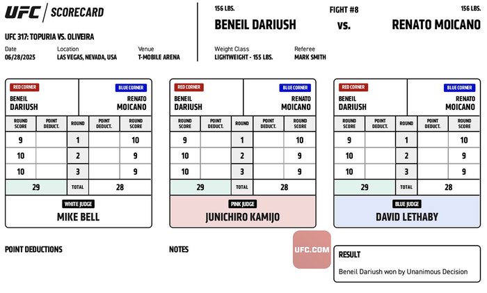 #UFC317 Official Result: Beneil Dariush (29-28, 29-28, 29-28 | @BeneilDariush) defeats Renato Moicano via Unanimous Decision.