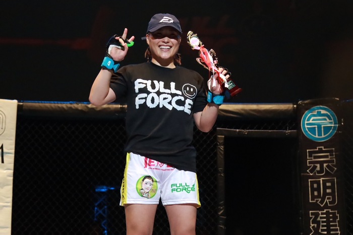 1R、ゴングと同時に前に出て右を突き合った両者。そのまま組むと四つに左差しで崩す樹季にMANAはバッククリンチ。