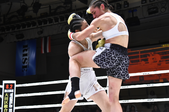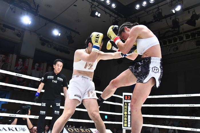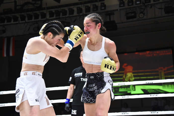 今後に関して問われると「強い選手とやりたいです。その中で、自分が戦いたいのはK-1のSAHO選手。彼女はいいプレイヤーだと思っているので戦いたいです。自分のベストを尽くしたいから彼女と戦いたい。その理由は彼女がいい選手だと知っているからこそ、彼女に勝って自分が一番強いことを証明したいと思っています」と、K-1 WORLD GP女子フライ級王者SAHO(闘神塾)の名をあげた。