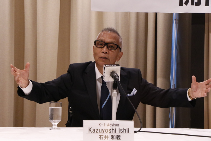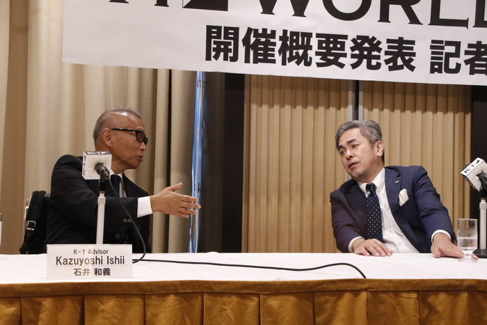 会見では-70kgの世界最強決定トーナメントを昨年に続き開催、16名選手参加により9月の開幕戦で1回戦8試合、11月の決勝ラウンドで準々決勝~決勝が行われることが発表されたが、K-1アドバイザーとして会見に出席した、K-1創始者である石井和義・正道会館館長は、会見で次々と“K-1改革案”を提案した。