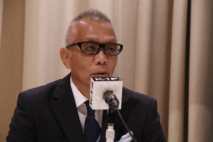 「K-1はいよいよ生まれ変わり、世界に発信していきます。これは今までやらなかったのではなくやれなかった。いろいろなものが整理されてブランディングも放送権も全て含めてM-1スポーツメディアに戻ってきましたのでこのような世界展開が出来るようになった。これは非常に喜ばしいことでございます。