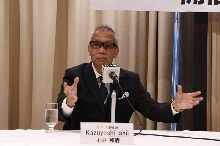 会見では-70kgの世界最強決定トーナメントを昨年に続き開催、16名選手参加により9月の開幕戦で1回戦8試合、11月の決勝ラウンドで準々決勝~決勝が行われることが発表されたが、K-1アドバイザーとして会見に出席した、K-1創始者である石井和義・正道会館館長は、会見で次々と“K-1改革案”を提案。さらに、K-1の未来について語った。