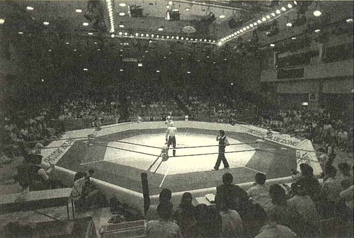 【写真】1989年、後楽園ホールにて産声を上げた修斗。この時の試合場はオクタゴン(八角形)リングが使用された(追記・今大会はケージ使用に)。