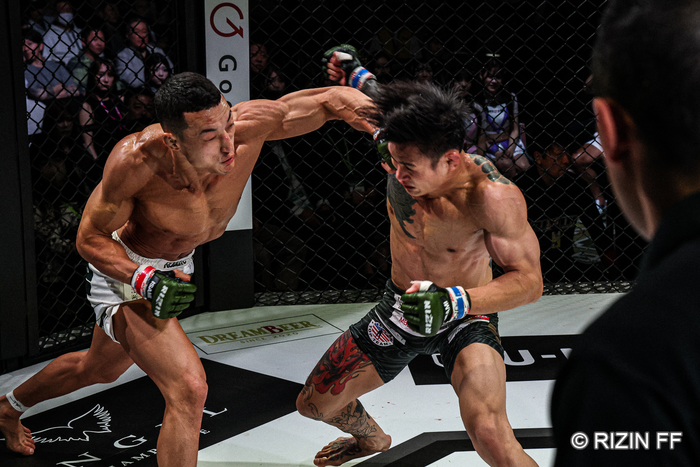 ともにサウスポー構えながら、ジヨンはキックベースで、安藤はレスリングベースの右足前構え。RIZINバンタム級上位戦線へ進むのは?