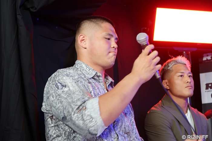 榊原CEOが、「ヘビー級の試合はGP2回戦が(同日に)あるので、内容でそれに負けない“やっぱすげえな”っていう大喧嘩頼むよ」と発破をかけると「任せてください、バチバチにいきます」と激闘を宣言した。