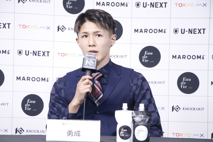 会見には勇成のみ出席し、「自分がKNOCK OUTに来た理由は龍聖選手に憧れて来ました。龍聖選手がスーパーフェザー級に上げて、正直KNOCK OUT-REDとBLACKフェザー級の注目が少ないと思うので、今回REDですがBLACKも両方いけるので日本フェザー級には勇成がいるぞと見せて一気にタイトルに絡んでいきたい。王者になります」と挨拶。