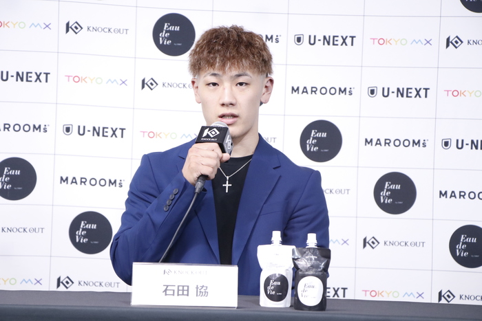 石田は、相手が4連敗していることについてどう思うかと聞かれると「相手が連勝中とか連敗中とかは関係なくて。相手選手の意気込みを聞いていると、UNLIMITEDでバチバチに1Rから来てくれるというのもあって、僕もバッチバチの殴り合いが大好きで、スイッチが入ったら止められない。UNLIMITEDルールの神髄を見せられるのかなと思います」と、高塩の意気込みを聞いて凄い試合が出来そうだと語った。