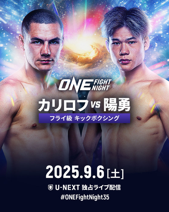 2025年9月6日(土)タイ・ルンピニースタジアム『ONE Fight Night 35』(U-NEXT配信)に、陽勇(=ひゅう/Team Mehdi Zatout/TEAM3K)の出場が発表された。フライ級キックボクシング3分3Rで、同級5位タギール・カリロフ(ロシア/Archangel Michel/Samingpri Muay Thai Gym)と対戦する。